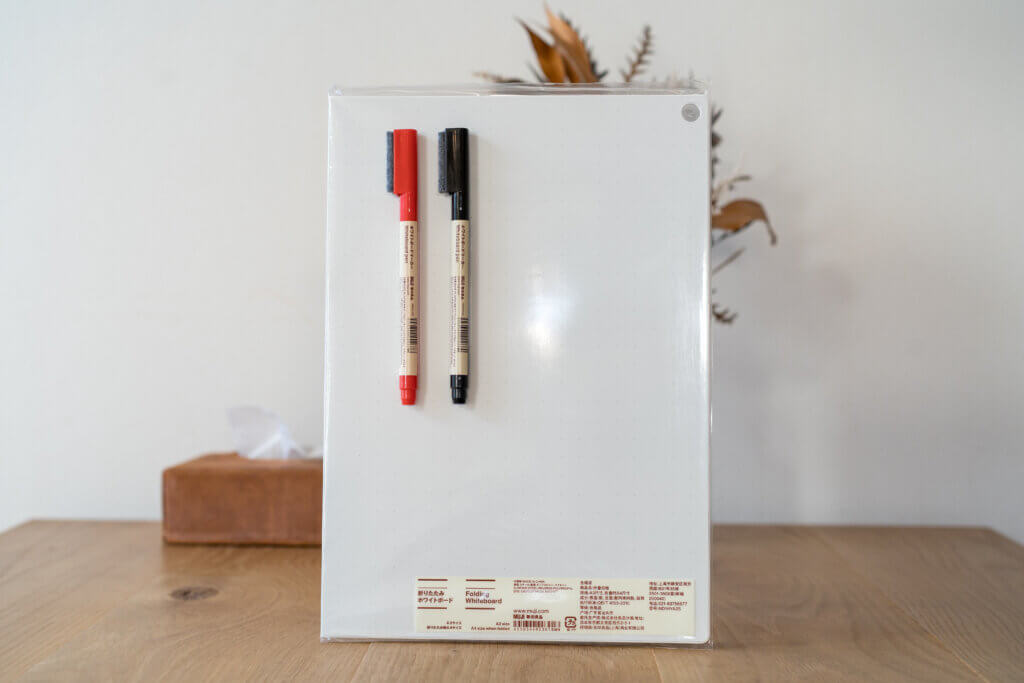 最初は「折りたたみホワイトボード」と「ホワイトボードマーカー赤・黒」です。