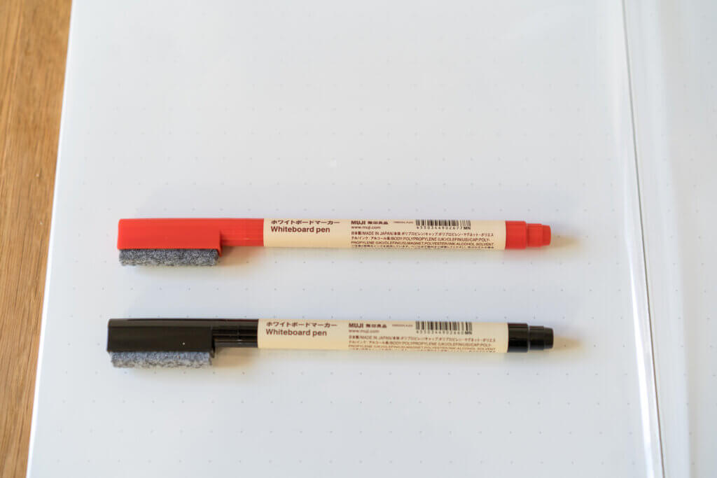 マーカーは赤と黒の2種類買いました。と言うよりも無印では2色しか無かったんですよね。