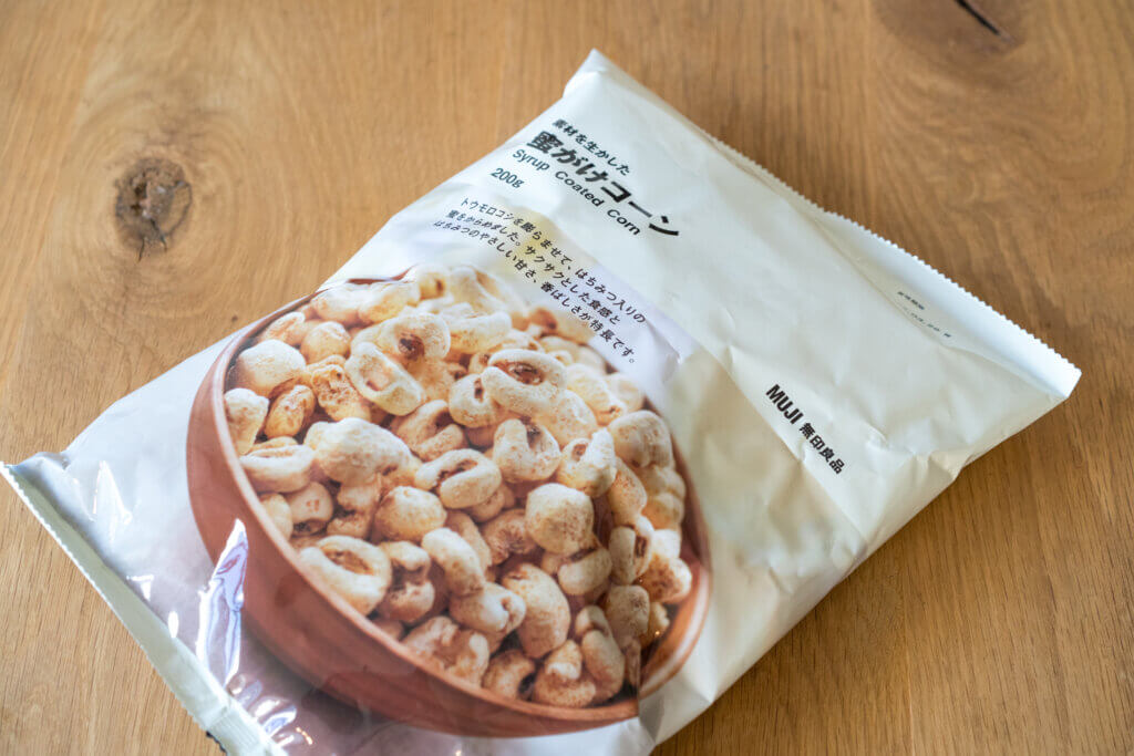 ポテチやアーモンドチョコなんかも好きなんですが、この無印良品の蜜がけコーンが好きなんですよね。