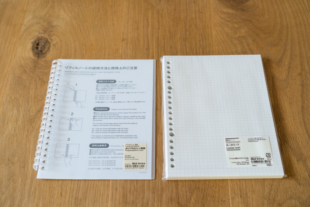 2つ目は「A5リフィルノート」と「ルーズリーフ」です。